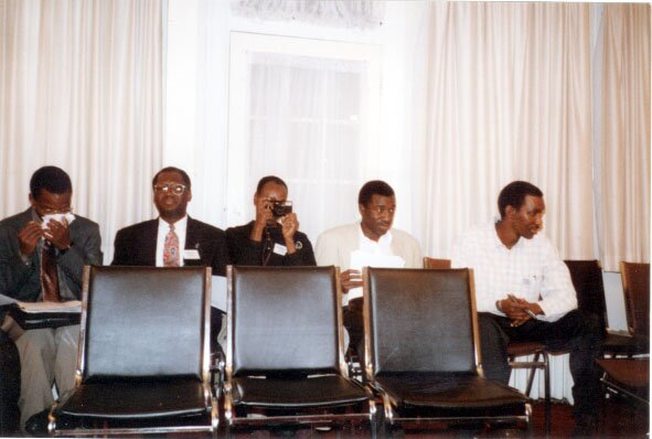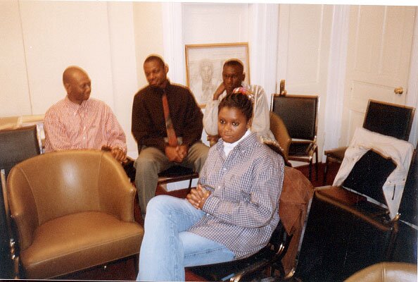 Penda Toure en avant. Au fond de gauche a droite:Samba Doucoure, Ibrahim Yattara, et (?).