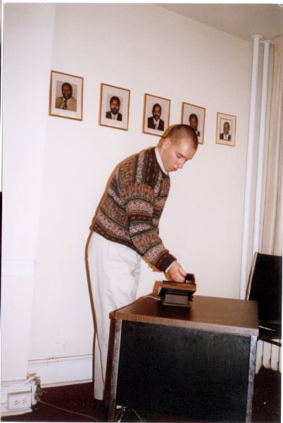 Qui d'autre que notre fameux Sibiry Traore trying to bug the embassy telephone. |