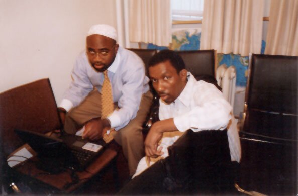 De gauche a droite Amadou Wane et Samba Sidibe entrain de preparer un virus pour attaquer l'Internet. Reussiront-ils? Une affaire a suivre. |